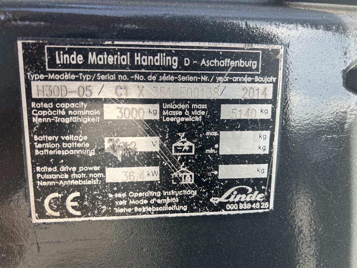 2014 MODEL LİNDE MARKA H30D SERİSİ 3 TON KAPASİTELİ DİZEL FORKLİFT